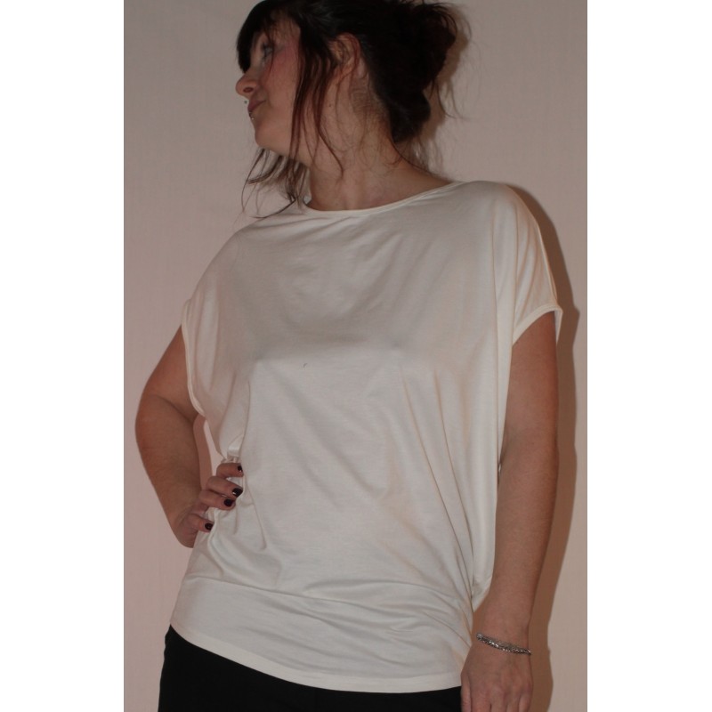 T-shirt ample, manches chauves-souris, jersey de viscose uni blanc