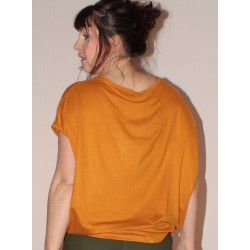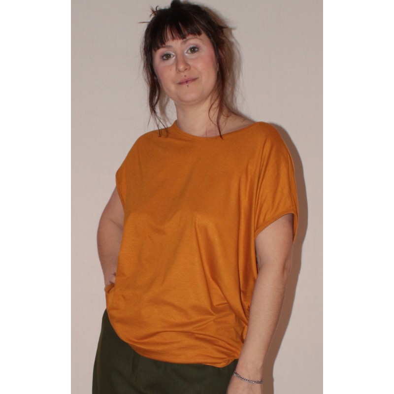 T-shirt ample, manches chauves-souris, jersey de viscose uni moutarde