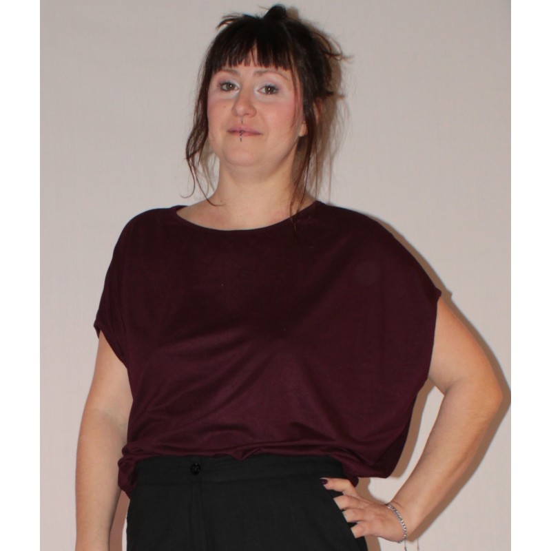 T-shirt ample, manches chauves-souris, jersey de viscose uni prune